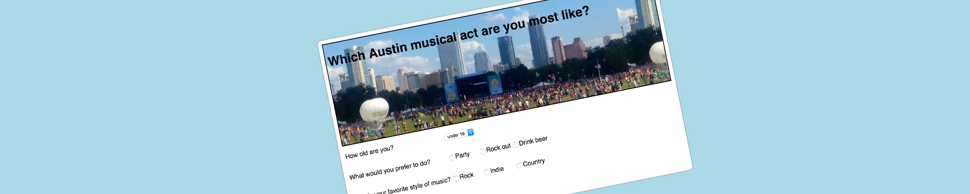 Here's another exercise to give you experience with DOM manipulation using text, dropdowns and radio buttons. Remember that text and dropdowns use document.getElementById("idname").value syntax and radio buttons use document.querySelector('input[name = "radioname"]:checked').value to capture the value from the form (where "idname" and "radioname" are the names you provide in the form for those elements). Refer to any of our previous exercises for examples.