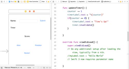 Sometimes you have both code and Storyboards open. When you want to have both open, you can use Option and select the other, so that you see both in the center editor area. You need to have both open when you are making connections between the interface elements and the code.